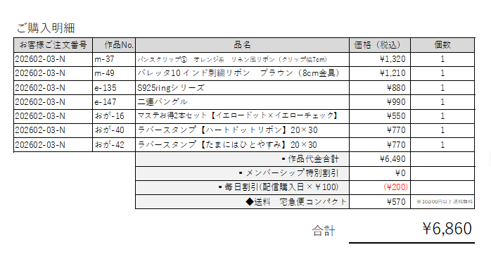 ご注文番号 【202602-03-N】さま