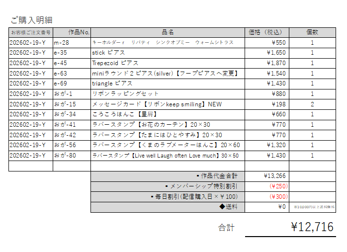 ご注文番号 【202602-19-Y】さま