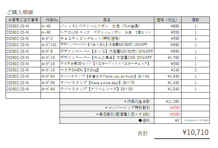 ご注文番号 【202602-23-N】さま