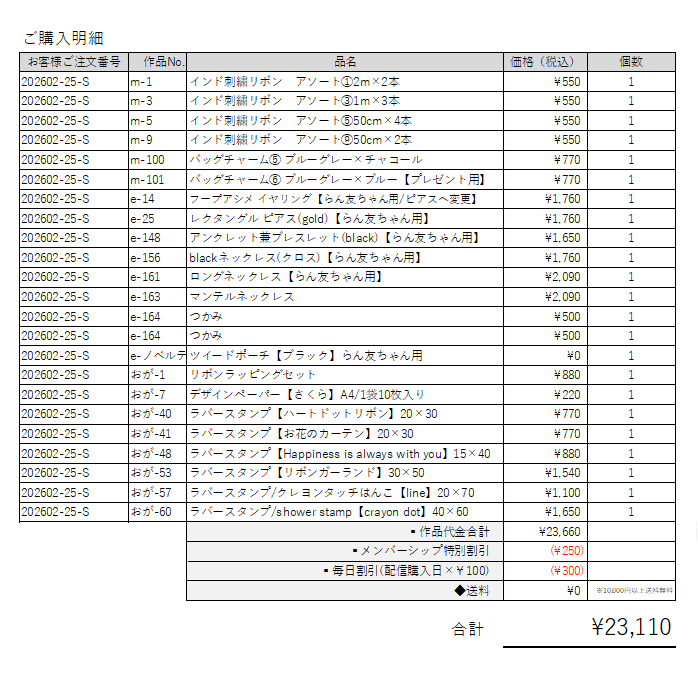 ご注文番号 【202602-25-S】さま