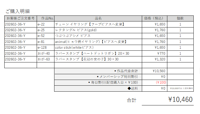 ご注文番号 【202602-36-Y】さま